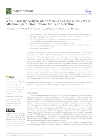 Bayarri Cayón, Vicente and Prada, Alfredo and García, Francisco and De Las Heras, Carmen and Fatás, Pilar vicente.bayarri@uneatlantico.es, UNSPECIFIED, UNSPECIFIED, UNSPECIFIED, UNSPECIFIED (2024) A Multisensory Analysis of the Moisture Course of the Cave of Altamira (Spain): Implications for Its Conservation. Remote Sensing, 16 (1). p. 197. ISSN 2072-4292