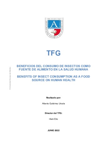 Gutiérrez Urcola, Alberto UNSPECIFIED (2022) Beneficios del consumo de insectos como fuente de alimento en la salud humana. Diploma thesis, UNSPECIFIED.