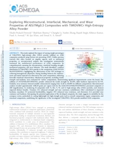 Dwivedi, Shashi Prakash and Sharma, Shubham and Li, Changhe and Zhang, Yanbin and Singh, Rajesh and Kumar, Abhinav and Awwad, Fuad A. and Khan, M. Ijaz and Ismail, Emad A. A. UNSPECIFIED (2024) Exploring Microstructural, Interfacial, Mechanical, and Wear Properties of AlSi7Mg0.3 Composites with TiMOVWCr High-Entropy Alloy Powder. ACS Omega, 9 (17). pp. 18813-18826. ISSN 2470-1343