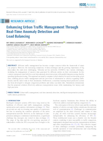 Driss Laanaoui, My and Lachgar, Mohamed and Mohamed, Hanine and Hamid, Hrimech and Gracia Villar, Santos and Ashraf, Imran UNSPECIFIED, UNSPECIFIED, UNSPECIFIED, UNSPECIFIED, santos.gracia@uneatlantico.es, UNSPECIFIED (2024) Enhancing Urban Traffic Management Through Real-Time Anomaly Detection and Load Balancing. IEEE Access, 12. pp. 63683-63700. ISSN 2169-3536