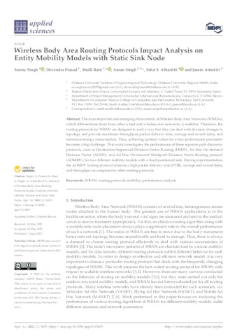 Singh, Sunny and Prasad, Devendra and Rani, Shalli and Singh, Aman and Alharithi, Fahd S. and Almotiri, Jasem UNSPECIFIED, UNSPECIFIED, UNSPECIFIED, aman.singh@uneatlantico.es, UNSPECIFIED, UNSPECIFIED (2022) Wireless Body Area Routing Protocols Impact Analysis on Entity Mobility Models with Static Sink Node. Applied Sciences, 12 (11). p. 5655. ISSN 2076-3417