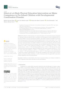 - Effect of a 6-Week Physical Education Intervention on Motor Competence in Pre-School Children with Developmental Coordination Disorder. (deposited 20 May 2021 11:12) [Currently Displayed]