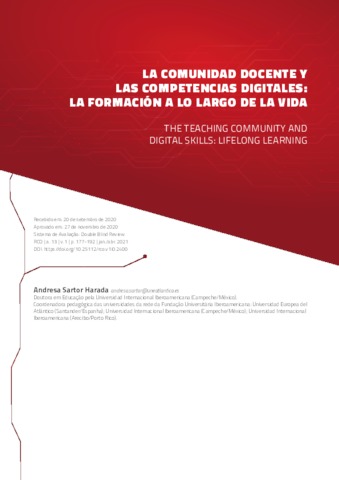 Sartor-Harada, Andresa andresa.sartor@uneatlantico.es (2021) La comunidad docente y las competencias digitales: la formación a lo largo de la vida. Revista Conhecimento Online, 1. p. 177. ISSN 2176-8501