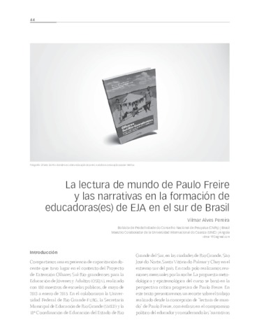 Pereira, Vilmar Alves UNSPECIFIED (2020) La lectura de mundo de Paulo Freire y las narrativas en la formación de educadores de EJA en el sur de Brasil. Decisio. pp. 44-49. ISSN 2448-7376