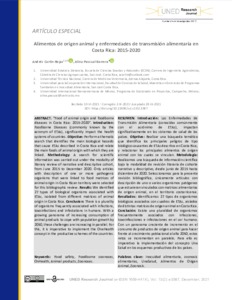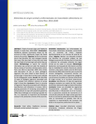 Cartín Rojas, Andrés and Pascual Barrera, Alina Eugenia UNSPECIFIED, alina.pascual@unini.edu.mx (2021) Alimentos de origen animal y Enfermedades de Transmisión Alimentaria en Costa Rica: 2015- 2020. UNED Research Journal, 13 (2). ISSN 1659-4266