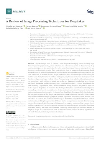 Shahzad, Hina Fatima and Rustam, Furqan and Soriano Flores, Emmanuel and Vidal Mazón, Juan Luis and de la Torre Diez, Isabel and Ashraf, Imran UNSPECIFIED, UNSPECIFIED, emmanuel.soriano@uneatlantico.es, juanluis.vidal@uneatlantico.es, UNSPECIFIED, UNSPECIFIED (2022) A Review of Image Processing Techniques for Deepfakes. Sensors, 22 (12). p. 4556. ISSN 1424-8220