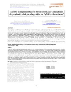 García Camacho, Manuel Eduardo and Anido Rivas, José Daniel UNSPECIFIED (2022) Diseño e implementación de un sistema de indicadores de productividad para la gestión de PyMEs colombianas. VISIÓN GERENCIAL, 1 (21). pp. 43-58. ISSN 13178822