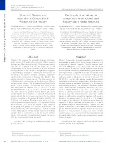 Haro, Xavier and Torres, Lorena and Casamichana Gomez, David and Romero, Blanca and Morencos, Esther and Rodas, Gil UNSPECIFIED, UNSPECIFIED, david.casamichana@uneatlantico.es, UNSPECIFIED, UNSPECIFIED, UNSPECIFIED (2020) International Competition Kinematic Demands in Male Field Hockey. Apunts Educación Física y Deportes (143). pp. 90-99. ISSN 1577-4015
