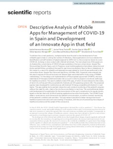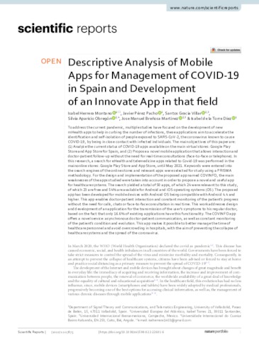 Herrera Montano, Isabel and Pérez Pacho, Javier and Gracia Villar, Santos and Aparicio Obregón, Silvia and Breñosa, Jose and de la Torre Díez, Isabel UNSPECIFIED, UNSPECIFIED, santos.gracia@uneatlantico.es, silvia.aparicio@uneatlantico.es, josemanuel.brenosa@uneatlantico.es, UNSPECIFIED (2022) Descriptive Analysis of Mobile Apps for Management of COVID-19 in Spain and Development of an Innovate App in that field. Scientific Reports, 12 (1). ISSN 2045-2322