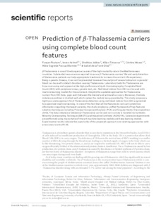Rustam, Furqan and Ashraf, Imran and Jabbar, Shehbaz and Tutusaus, Kilian and Mazas Pérez-Oleaga, Cristina and Pascual Barrera, Alina Eugenia and de la Torre Diez, Isabel UNSPECIFIED, UNSPECIFIED, UNSPECIFIED, kilian.tutusaus@uneatlantico.es, cristina.mazas@uneatlantico.es, alina.pascual@unini.edu.mx, UNSPECIFIED (2022) Prediction β-Thalassemia carriers using complete blood count features. Scientific Reports, 12 (1). ISSN 2045-2322