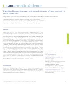 de Carmen Ortega Jiménez, Mayra and García Rodríguez, Deysi Emilia and Hidalgo Mares, Brenda and Ortega Jiménez, Marcela UNSPECIFIED (2021) Educational interventions on breast cancer in men and women: a necessity in primary healthcare. ecancermedicalscience, 15. ISSN 17546605