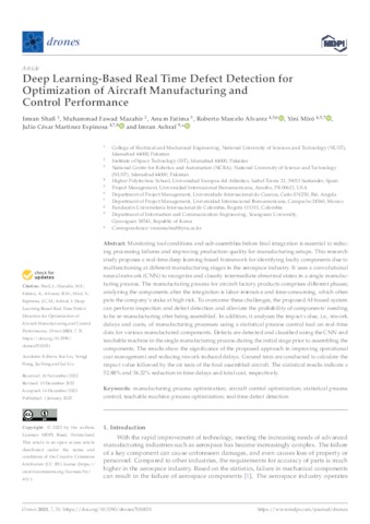 Shafi, Imran and Mazhar, Muhammad Fawad and Fatima, Anum and Álvarez, Roberto Marcelo and Miró Vera, Yini Airet and Martínez Espinosa, Julio César and Ashraf, Imran UNSPECIFIED, UNSPECIFIED, UNSPECIFIED, roberto.alvarez@uneatlantico.es, yini.miro@uneatlantico.es, ulio.martinez@unini.edu.mx, UNSPECIFIED (2023) Deep Learning-Based Real Time Defect Detection for Optimization of Aircraft Manufacturing and Control Performance. Drones, 7 (1). p. 31. ISSN 2504-446X