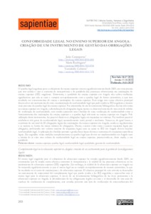 O quadro legal angolano para o subsistema de ensino superior cresceu significativamente desde 2009, um crescimento que tem estado a visar o aumento da transparência e da qualidade dos processos educacionais nas instituições de ensino superior (IES) angolanas. Entretanto, a qualidade do ensino superior em Angola não sofreu melhorias significativas por não se estar a cumprir escrupulosamente com o quadro legal de forma sistemática, o que tem resultado em encerramentos de cursos e instituições do ensino superior. Este artigo tem como objetivo principal desenvolver um instrumento de auto- monitorização da conformidade legal que pode ajudar as IES angolanas a tirarem mais proveito do quadro legal do ensino superior. Por intermédio de um levantamento bibliográfico das leis relevantes ao ensino superior em Angola, a identificação de obrigações legais nestas e o desenvolvimento de uma série de tabelas de verificação de conformidade, este estudo apresenta uma checklist de auto verificação da conformidade entre o funcionamento das instituições do ensino superior e o quadro legal relevante ao ensino superior em Angola. Pela utilização deste instrumento, foi possível dissecar as obrigações legais em requisitos ou critérios. Foi também possível estabelecer três graus de conformidade legal, nomeadamente: total, parcial e nenhuma. Notou-se, de igual forma, a existência de um total de 83 obrigações legais das instituições do ensino superior em Angola, sendo os regulamentos e as normas as fontes do maior número de obrigações. Destes, existem entre cinco a quinze requisitos legais por obrigação, perfazendo um volume enorme de requisitos legais com os quais as IES em Angola devem mostrar conformidade legal. A aplicação da checklist permite a gestão desse leque diverso e numeroso de requisitos específicos legais. São sugeridas várias medidas complementares ao quadro legal que devem ser implementadas em Angola com o intuito de se criar uma cultura de conformidade legal no ensino superior, promovendo-se, deste modo, a sua qualidade.