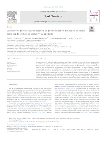 Gil-Martín, Emilio and Forbes-Hernández, Tamara and Romero, Alejandro and Cianciosi, Danila and Giampieri, Francesca and Battino, Maurizio UNSPECIFIED, UNSPECIFIED, UNSPECIFIED, UNSPECIFIED, francesca.giampieri@uneatlantico.es, maurizio.battino@uneatlantico.es (2022) Influence of the extraction method on the recovery of bioactive phenolic compounds from food industry by-products. Food Chemistry, 378. p. 131918. ISSN 03088146