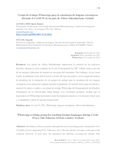| Uncontrolled Keywords: | Covid-19; TIC; WhatsApp; lenguas extranjeras; África Subsahariana |