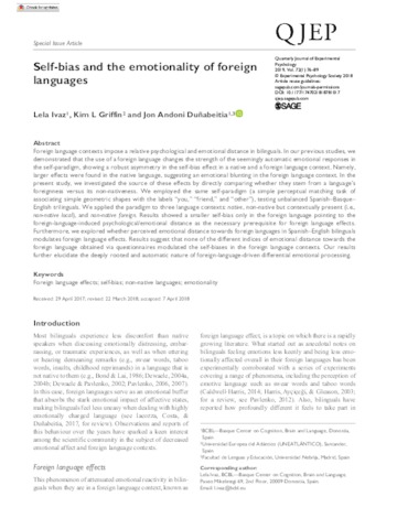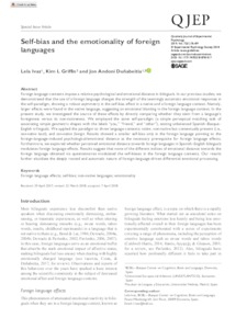 Ivaz, Lela and Griffin, Kim L. and Duñabeitia, Jon Andoni UNSPECIFIED, kim.griffin@uneatlantico.es, UNSPECIFIED (2019) Self-bias and the emotionality of foreign languages. Quarterly Journal of Experimental Psychology, 72 (1). pp. 76-89. ISSN 1747-0218