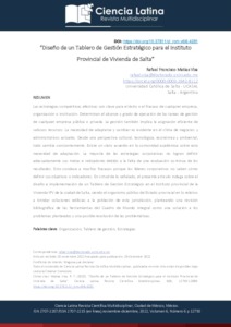Las estrategias competitivas efectivas son clave para el éxito o el fracaso de cualquier empresa, organización o institución. Determinan el alcance y grado de ejecución de las tareas de gestión de cualquier empresa pública o privada. La gestión también implica la asignación eficiente de valiosos recursos. La necesidad de adaptarse y cambiar es evidente en el clima de negocios y administrativos actuales. Desde una perspectiva cultural, tecnológica, económica y ambiental, todo cambia constantemente. Existe un claro acuerdo en la comunidad académica sobre esta necesidad de adaptación. La mayoría de las estrategias corporativas no logran definir adecuadamente sus metas e indicadores debido a la falta de una evaluación continua de los resultados. Esto conduce a muchos fracasos porque los líderes corporativos no saben cómo definir sus objetivos o indicadores. En virtud de lo señalado, el presente articulo indaga sobre el diseño e implementación de un Tablero de Gestión Estratégico en el Instituto provincial de la Vivienda IPV de la ciudad de Salta, siendo el organismo público del Estado provincial en lo relativo a brindar soluciones edilicias a la población de esta jurisdicción, planteando una revisión bibliográfica de las herramientas del Cuadro de Mando integral como una solución a los problemas planteados y una posible resolución de las problemáticas.
