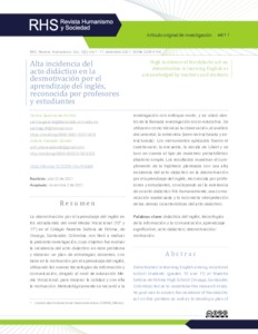 La desmotivación por el aprendizaje del inglés en los estudiantes del nivel Media Vocacional (10° y 11°) en el Colegio Nuestra Señora de Fátima, de Onzaga, Santander, Colombia, nos llevó a realizar la presente investigación, cuyo objetivo fue evaluar la incidencia del acto didáctico en este problema y elaborar un plan de estrategias docentes, con base en la motivación por el aprendizaje del inglés, utilizando las nuevas tecnologías de información y comunicación, dirigido al nivel de educación Media Vocacional, para mejorar la calidad y con ella la motivación. Metodológicamente se recurrió a la investigación con enfoque mixto, y se ubicó dentro de la llamada investigación socio-educativa. Se utilizaron como técnicas la observación, el análisis documental, la entrevista (semi-estructurada y estructurada). Los instrumentos aplicados fueron el cuestionario, la encuesta, la escala de Likert y se tuvo en cuenta el tipo de muestreo probabilístico aleatorio simple. Los resultados muestran el cumplimiento de la hipótesis planteada con una alta incidencia del acto didáctico en la desmotivación por el aprendizaje del inglés, reconocida por profesores y estudiantes, concluyendo así la existencia de un acto didáctico frío humanamente, una comunicación inadecuada y la incorrecta interpretación de las demás características del acto didáctico.