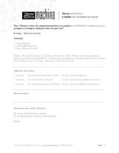 Brassard, Nancy and Lavoie, Charles-Étienne and Djiowou Youmbi, Herve UNSPECIFIED (2022) Présent et futur des adaptations positives à la pandémie de COVID-19: résilience, bonnes pratiques et stratégies employées deux ans plus tard. Ad machina (6). pp. 2-12.