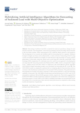Yadav, Arvind and Ali Albahar, Marwan and Chithaluru, Premkumar and Singh, Aman and Alammari, Abdullah and Kumar, Gogulamudi Vijay and Miró Vera, Yini Airet UNSPECIFIED, UNSPECIFIED, UNSPECIFIED, aman.singh@uneatlantico.es, UNSPECIFIED, UNSPECIFIED, yini.miro@uneatlantico.es (2023) Hybridizing Artificial Intelligence Algorithms for Forecasting of Sediment Load with Multi-Objective Optimization. Water, 15 (3). p. 522. ISSN 2073-4441