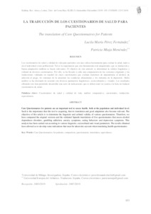 Los cuestionarios de salud y calidad de vida para pacientes son una valiosa herramienta para evaluar la salud, tanto a nivel individual como poblacional. Tal es la importancia que esta herramienta está adquiriendo, que su traducción y buena adaptación también se hacen relevantes. El objetivo de este artículo es determinar la validez lingüística y cultural de diversos cuestionarios. Por ello, se ha llevado a cabo una comparación de las versiones originales y las traducciones validadas en español de cinco cuestionarios que evalúan trastornos de dependencia al alcohol, de adicción al juego, los síntomas de la ansiedad, las conductas alimentarias y los síntomas de la depresión. Dicho análisis se ha efectuado de acuerdo con diversos parámetros lingüísticos, socioculturales y visuales. Los resultados obtenidos nos han permitido desarrollar una serie de indicaciones que se deben tener en cuenta a la hora de traducir cuestionarios de salud.