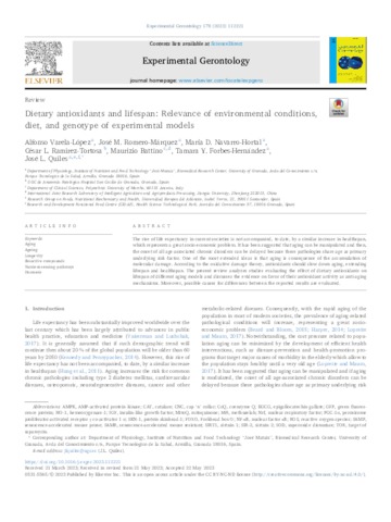Varela-López, Alfonso and Romero-Márquez, José M. and Navarro-Hortal, María D. and Ramirez-Tortosa, César L. and Battino, Maurizio and Forbes-Hernández, Tamara Y. and Quiles, José L. UNSPECIFIED, UNSPECIFIED, UNSPECIFIED, UNSPECIFIED, maurizio.battino@uneatlantico.es, UNSPECIFIED, jose.quiles@uneatlantico.es (2023) Dietary antioxidants and lifespan: Relevance of environmental conditions, diet, and genotype of experimental models. Experimental Gerontology, 178. p. 112221. ISSN 05315565