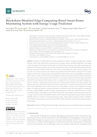 Iqbal, Faiza and Altaf, Ayesha and Waris, Zeest and Gavilanes Aray, Daniel and López Flores, Miguel Ángel and Díez, Isabel de la Torre and Ashraf, Imran UNSPECIFIED, UNSPECIFIED, UNSPECIFIED, daniel.gavilanes@uneatlantico.es, miguelangel.lopez@uneatlantico.es, UNSPECIFIED, UNSPECIFIED (2023) Blockchain-Modeled Edge-Computing-Based Smart Home Monitoring System with Energy Usage Prediction. Sensors, 23 (11). p. 5263. ISSN 1424-8220