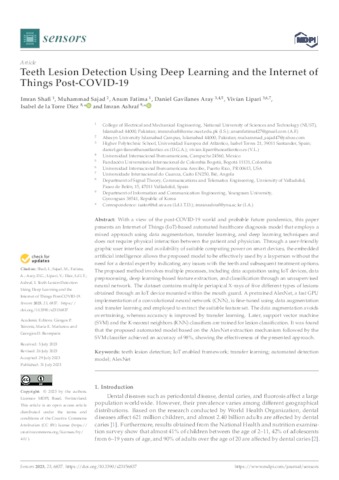 Shafi, Imran and Sajad, Muhammad and Fatima, Anum and Gavilanes Aray, Daniel and Lipari, Vivian and Diez, Isabel de la Torre and Ashraf, Imran UNSPECIFIED, UNSPECIFIED, UNSPECIFIED, daniel.gavilanes@uneatlantico.es, vivian.lipari@uneatlantico.es, UNSPECIFIED, UNSPECIFIED (2023) Teeth Lesion Detection Using Deep Learning and the Internet of Things Post-COVID-19. Sensors, 23 (15). p. 6837. ISSN 1424-8220