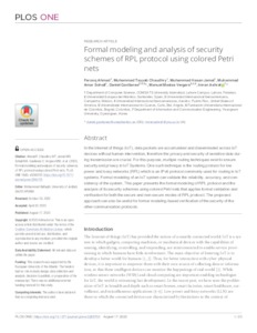 Balfaqih, Mohammed and Ahmad, Farooq and Chaudhry, Muhammad Tayyab and Jamal, Muhammad Hasan and Sohail, Muhammad Amar and Gavilanes Aray, Daniel and Masías Vergara, Manuel and Ashraf, Imran UNSPECIFIED, UNSPECIFIED, UNSPECIFIED, UNSPECIFIED, UNSPECIFIED, daniel.gavilanes@uneatlantico.es, manuel.masias@uneatlantico.es, UNSPECIFIED (2023) Formal modeling and analysis of security schemes of RPL protocol using colored Petri nets. PLOS ONE, 18 (8). e0285700. ISSN 1932-6203