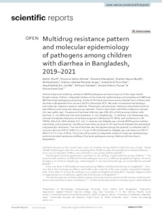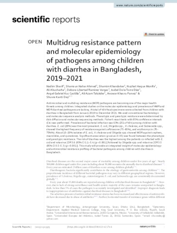 Sharif, Nadim and Ahmed, Shamsun Nahar and Khandaker, Shamim and Monifa, Nuzhat Haque and Abusharha, Ali and Ramírez-Vargas, Debora L. and Díez, Isabel De la Torre and Kuc Castilla, Ángel Gabriel and Talukder, Ali Azam and Parvez, Anowar Khasru and Dey, Shuvra Kanti UNSPECIFIED, UNSPECIFIED, UNSPECIFIED, UNSPECIFIED, UNSPECIFIED, debora.ramirez@unini.edu.mx, UNSPECIFIED, UNSPECIFIED, UNSPECIFIED, UNSPECIFIED, UNSPECIFIED (2023) Multidrug resistance pattern and molecular epidemiology of pathogens among children with diarrhea in Bangladesh, 2019–2021. Scientific Reports, 13 (1). ISSN 2045-2322